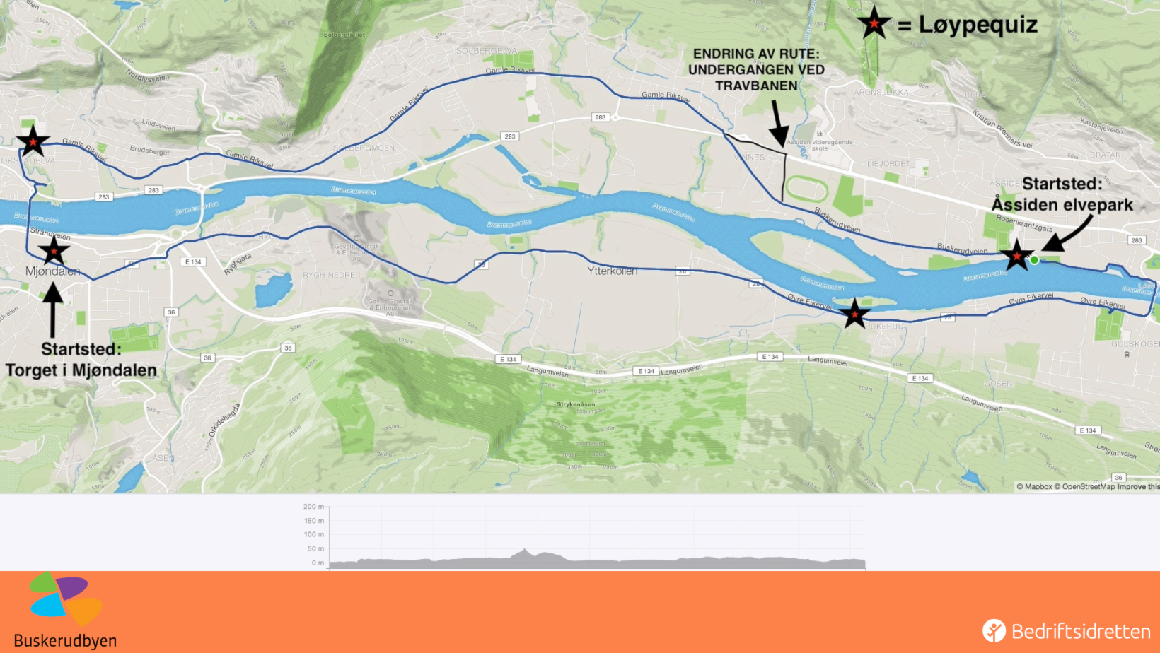 Start: Mellom kl. 10.00 -12.00. Start på én av de to startstedene: Åssiden Elvepark(volleyballbanen) eller torget i Mjøndalen.